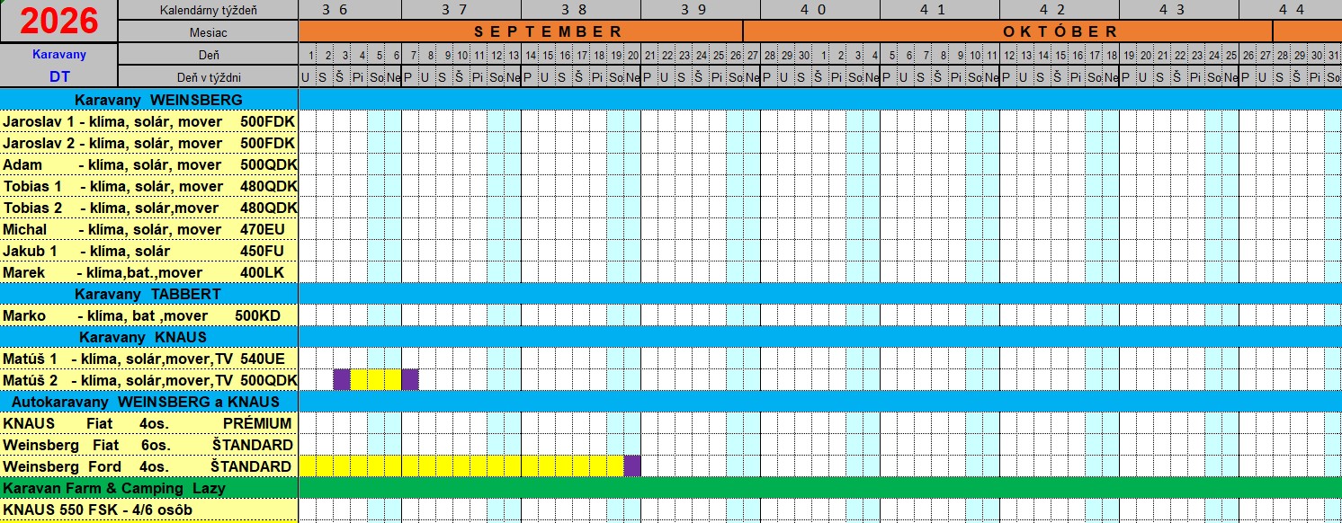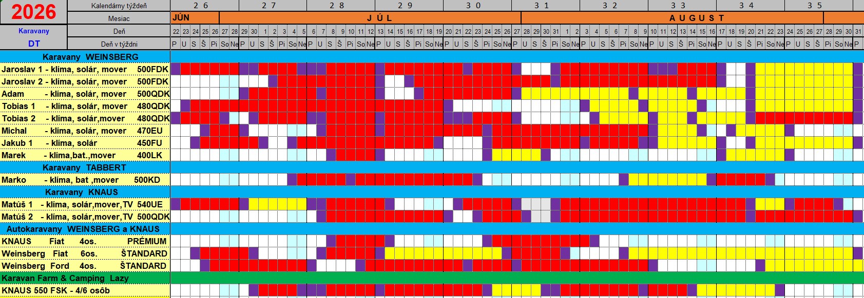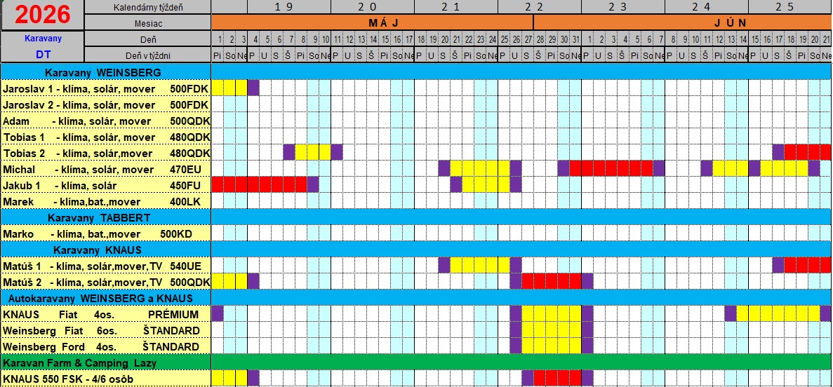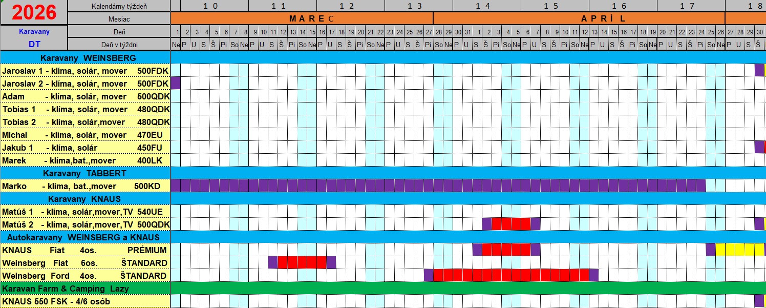 Predbežné rezervácie na sezónu 2026. Nezáväzne platné do 30.4.2026 bez zálohovej platby . V marci/apríly sa potvrdzujú zálohami.